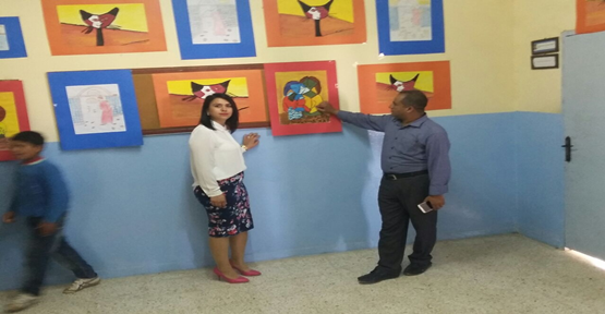 Şanlıurfa'nın Eyyübiye ilçesi Ulucanlar ilköğretim okulunda öğrencilerin yapmış oldukları sulu boya çalışmaları sergilendi.