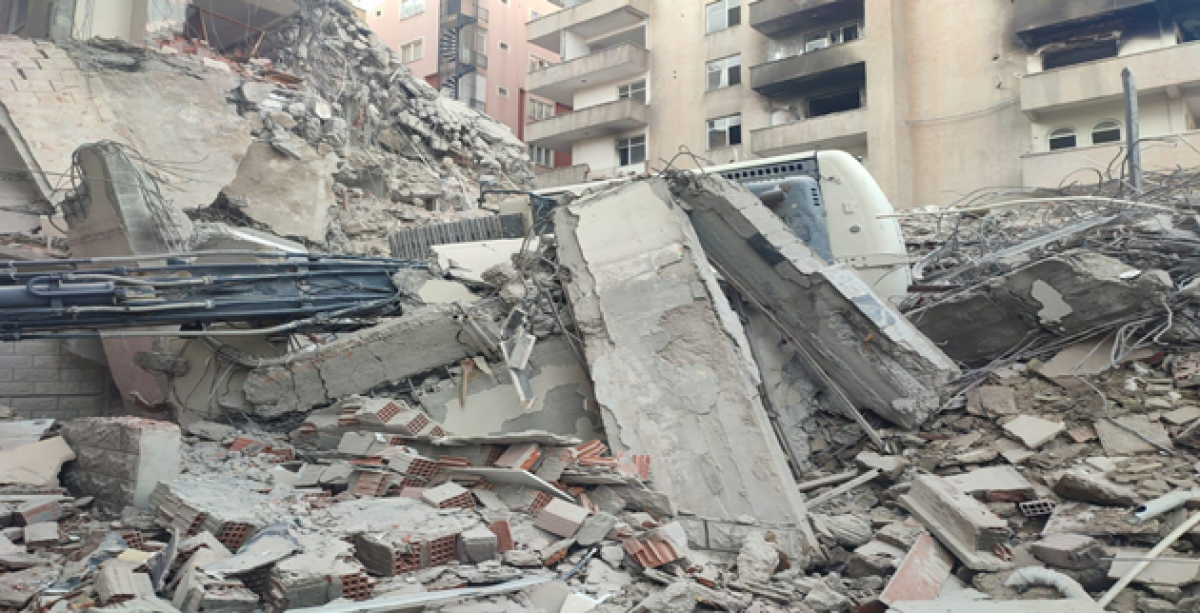 Şanlıurfa'nın Haliliye İlçesi Atatürk bulvarında hasarlı bina yıkımında kepçenin yan yatması sonucu bir kişi göçük altında kaldı.
