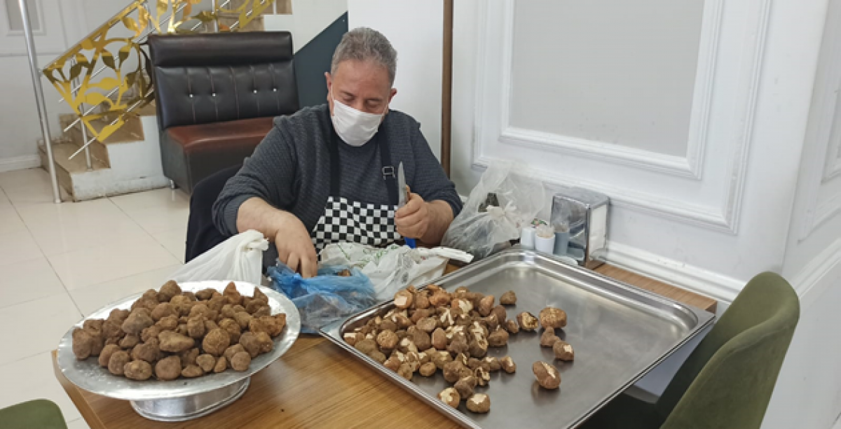 Bayram,"Keme Urfa'ya özgü bir yiyecektir, biz bunun kebabını yapıyoruz. Sadece ilk bahar aylarında olur. 30-45 günde olur ve biter, şuna da bu yıl fazla yağış olmadığından kilosu 130-140 liradır. Tamamen doğa bir ürün. Tarla olmayan dağın eteklerinde, tepelerde yağışlara bağlı olarak ortaya çıkar. Köylüler toplayıp bu dönemde bize getiriyorlar. Biz de bunu temizledikten sonra etle birlikte karıştırıp harika bir lezzete dönüştürüyoruz. Bu kebabın yaklaşık 1,5 aylık süresi var, ondan sonra olmaz.