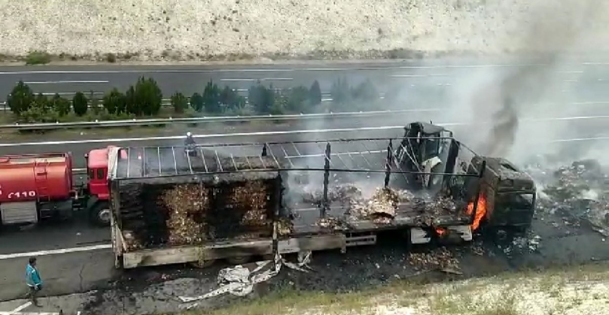 Yangın kısa sürede dorsenin her yerine yayılırken, olay yerine gelen jandarma ekipleri yolu trafiğe kapattı. Tırda büyük hasar meydana gelirken, yangını söndüren itfaiye ekiplerinin soğutma çalışmalarını tamamlamasının ardından karayolu yeniden trafiğe açıldı.