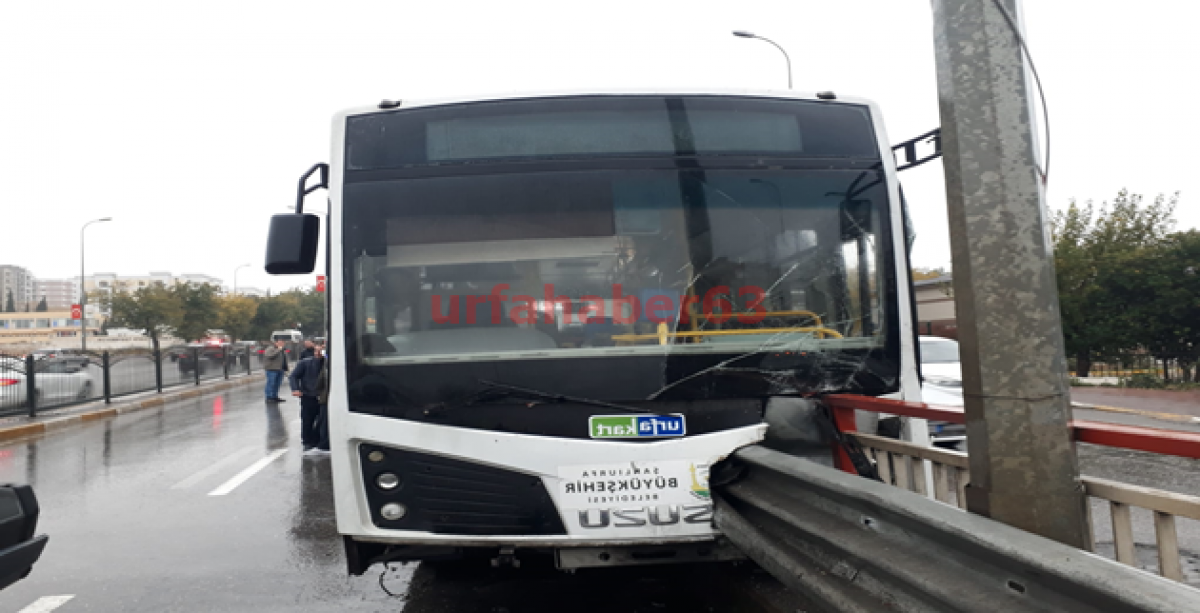 Urfa'da otobüs demir bariyere saplandı