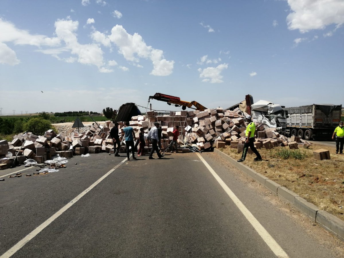 Sanlıurfa-Mardin yolu üzerinde direksiyon hakimiyetini kaybeden tır ana yolu trafiğe kapattı.