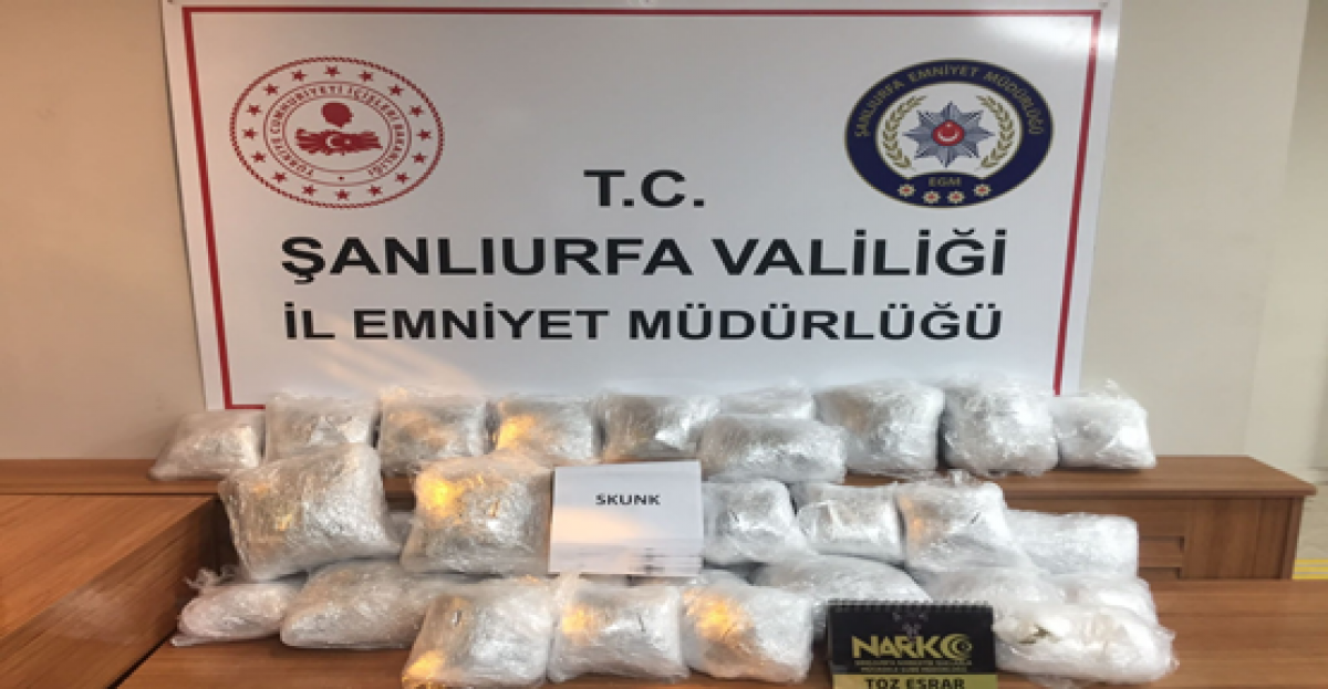 Şanlıurfa Emniyetin, den bir Başarlı operasyon dana Şanlıurfa’ Emniyet müdürlüğüne bağlı narkotik ekiplerince Uyuşturucu madde kullanımı ve satışıyla mücadele kapsamında yapılan operasyonda Diyarbakır Şanlıurfa karayolu üzerinde durdurulan TIR ın dorsesinde yapılan aramada 32 parça halinde toplam 20 kg 200 gr Skunk, 800 gr Esrar ele geçirilmiş olayla ilgili tır sürücüsü gözaltına alındı