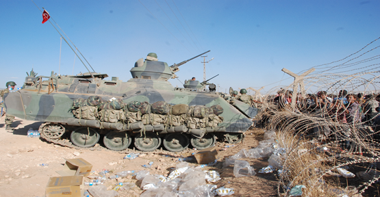Suriye'de yaşanan şiddetli çatışmalarda havan topu mermisinin Türkiye tarafına düşmesi sonucu bölgedeki tanklar ve zırhlı araçlar harekete geçti.