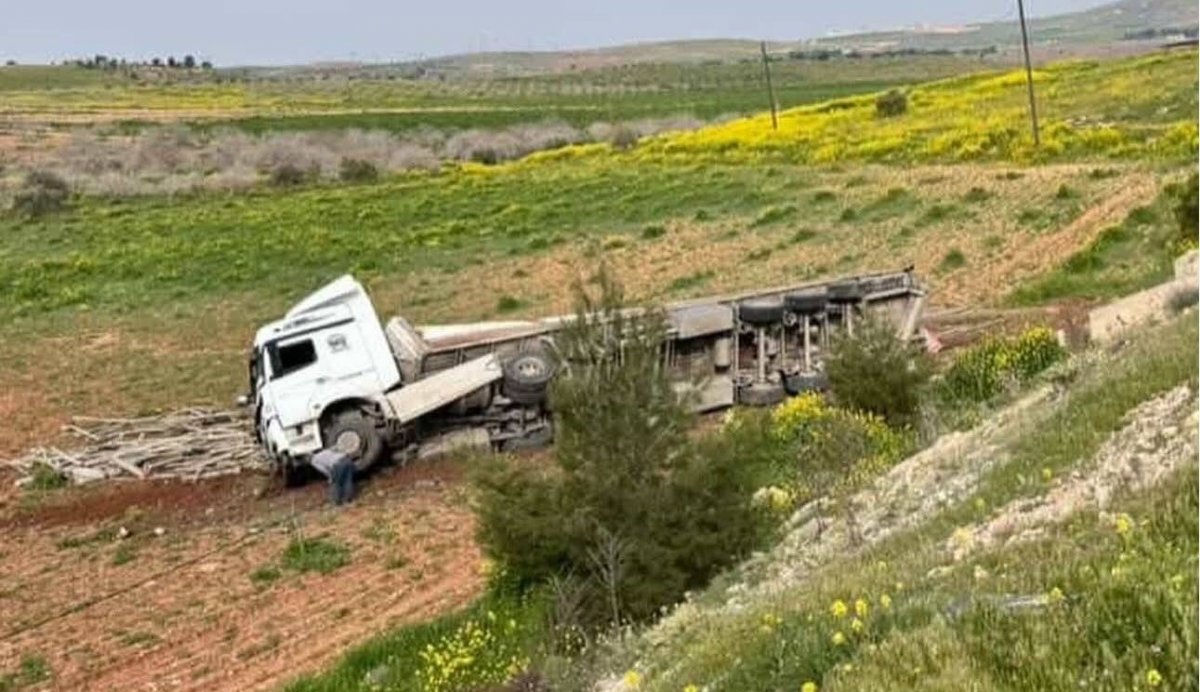 Şanlıurfa’nın Bozova ilçesinde kontrolden çıkan tır şarampole devrildi.