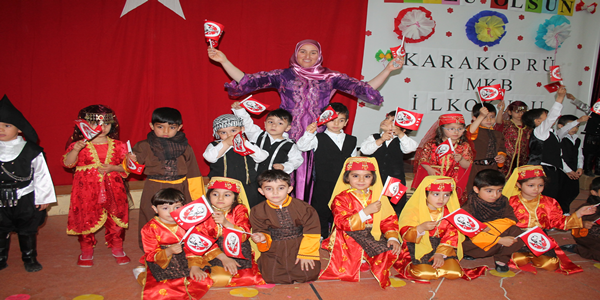 Karaköprü İ.M.K.B ilkokulu Anaokulu öğrencileri, 23 Nisan Ulusal Egemenlik ve Çocuk Bayramı'nı çeşitli gösterilerle kutladı. Anadolu Güzel sanatlara lisesi spor solunda gerçekleşen kutlamalara Okul idarecileri, öğretmenler, öğrenciler ve öğrenci velileri katıldı. Program saygı duruşu ve istiklal marşı ile başladı. İstiklal Marşı’nın okunmasından sonra Anasınıfı öğretmenlerin hazırlamış oldukları gösteriler öğrencilerin muhteşem performansıyla sunuldu. koro, halk oyunları ve birbirinden özel gösterileri sahneledi. Anasınıfı Öğrencilerinin sunduğu gösteri okul yönetimi, öğretmenler, veliler ve öğrencilerden yoğun alkış aldı.