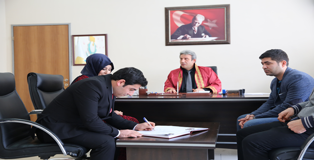 14 Şubat Sevgililer Günü'nde nikah kıymak isteyen çiftler Şanlıurfa'nın Haliliye Belediyesi nikah dairesine başvurdu. Belediyeye başvuran çiftler, görevliler tarafından nikahları kıyılarak evlilik cüzdanları ise geline teslim edildi. 14 Şubat'ta nikah masasına oturan çiftler, unutulmaz bir tarih olması için bugünü beklediklerini ifade etti. çiftler, nikah memurunun huzurunda Sevgililer Günü'nde çifte mutluluk yaşadı. Çiftlerden 66 yaşındaki Ramazan Ataş ile evlenen 56 yaşındaki Şemse Aslan imza yerine nikah kütüğüne şahitlerin huzurunda parmak bastı.