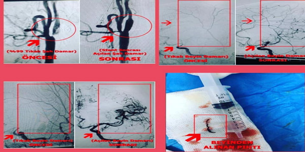 Doktor Sedat Yaşir başarı erken tanı ve tedavisi ile Anjiyoda hastanın beyin damarındaki pıhtı alındı Sol Şah Damarındaki Darlık ise stent takılarak tam açıklık sağlandı.