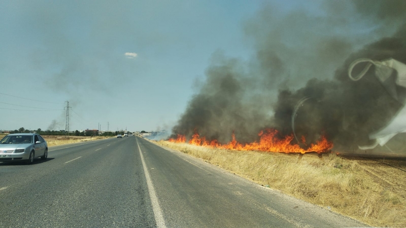 Yangın Şanlıurfa'nın Suruç ilçesine bağlı Topçular Kırsal Mahallesinde meydana geldi. Yol üzerinde bulunan tarlada çıkan yangın tehlikeye davetiye çıkardı.