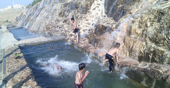 Kent merkezinde hava sıcaklığın 50 dereceyi bulması aşırı sıcaktan bunalan çocuklar, Akabe çıkışında bulunan şelalede serinlemeye çalışıyor. Çocuklar kent genelinde serinleyecekleri bir ortamın olmadığından tehlikeli olmasına rağmen şelalede yüzdüklerini ifade ettiler