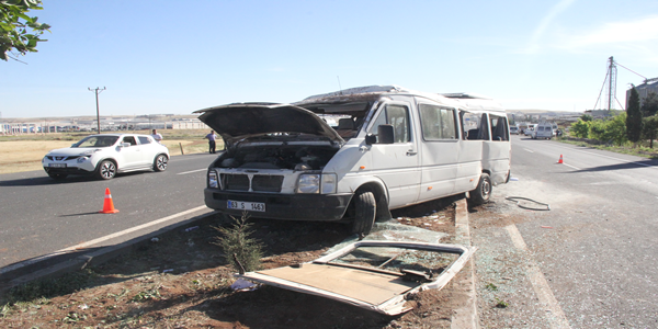 Kaza, Şanlıurfa- Suruç Karayolu'nun 20'nci kilometresinde meydana geldi. Alının bilgilere göre, Öğrenciler taşıyan Şükrü A. idaresindeki i 63 S 1463 plakalı servis minibüsü, Şanlıurfa Organize Sanayi Bölgesi yakınlarında sürücüsünün direksiyon hakimiyetini yitirmesi sonucu kontrolden çıkıp orta refüje çıktıktan sonra devrildi. Kazada minibüsteki öğrencilerden 8'i yaralandı. Olayın haber verilmesi ile olay yerine çok sayıda Ambulans sevk edildi. Yaralı öğrenciler, sağlık görevlileri tarafından ambulanslarla Şanlıurfa'daki hastanelere götürüldü. Acil servislerde tedaviye alınan yaralı öğrencilerin sağlık durumlarının iyi olduğu belirtildi Kazayla ilgili soruşturma başlatıldı.