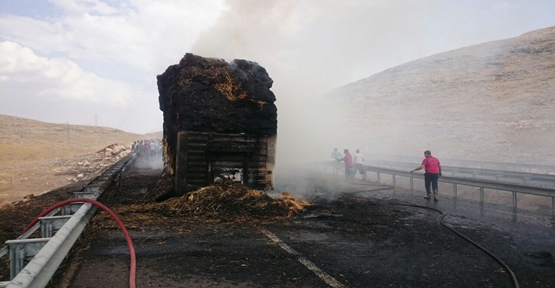 Urfa'da saman yüklü tır alev aldı