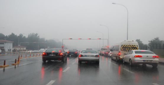 Şanlıurfa'da sabah saatlerinde etkili olan sis ve yağmur araç trafiğini etkiledi.