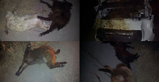 Şanlıurfa’nın Suruç ilçesi  11 Nisan mahallesinde yolun karşı tarafına geçen koyunlara Otomobil çarptı. Kazada 1 kişi yaralanırken 25 koyun ve keçi telef oldu.