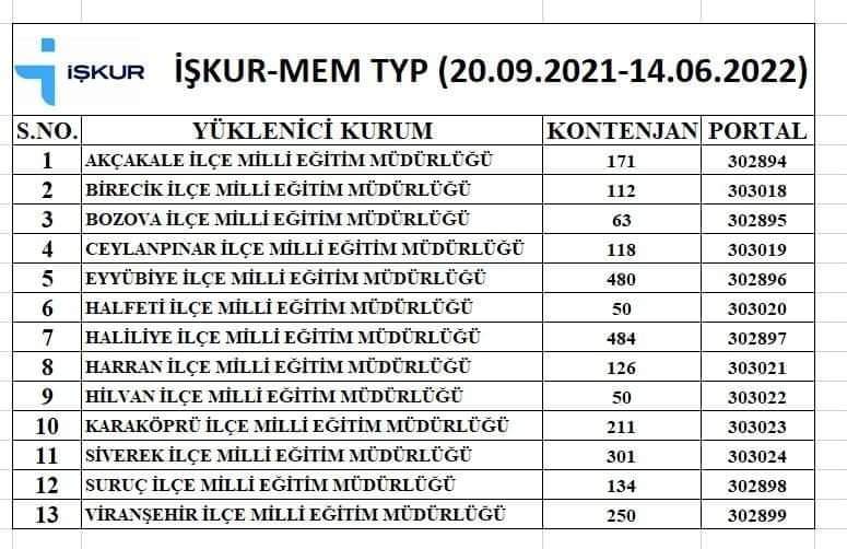 Milli Eğitim Bakanlığınca yürütülen çalışmalar kapsamında Şanlıurfa'da toplum yararına projesi kapsamında okullarda 9 ay işçi çalıştırılacak. Bu kapsamda İl genelinde alınacak ve okulların personel ihtiyacı belirlendi.Bir kaç gün önce Ak parti Şanlıurfa il başkanı Abdurrahman Kırıkçı'nin kent genelinde 2 bin 500 kişinin söz konusu proje kapsamında çalıştırılacagi müjdesini vermişti.İssizlerin dört gözle beklediği müjdenin ardından İl Milli Eğitim Müdürlüğü okullarda çalıştırılacak personel sayısını belirledi. Proje kapsamında işe alınacak kişiler İŞKUR bünyesinde 9 ay boyunca okullarda çalışma imkanı bulacak.