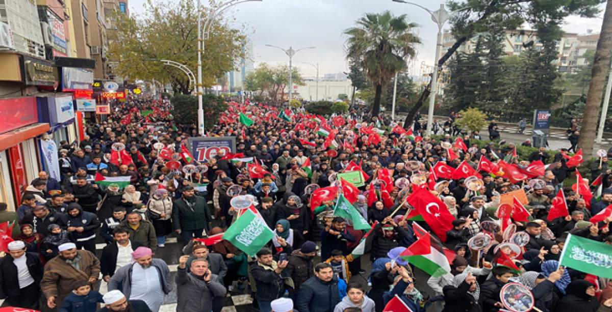 “Şanlıurfa’dan Şanlı Direnişe Bin Selam” yürüyüşü yağmura rağmen binlerce vatandaş katıldı. Vatandaşlar tekbir getirerek, İsrail aleyhine sloganlar attı.