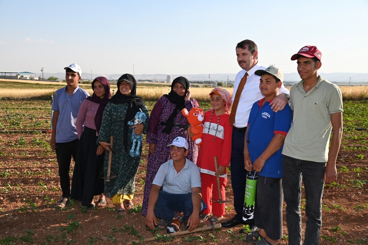 Şanlıurfa Valisi Salih Ayhan, Göktepe kırsal mahallesinde pamuk tarlasında çalışan işçilerle birlikte çapa yaptı.