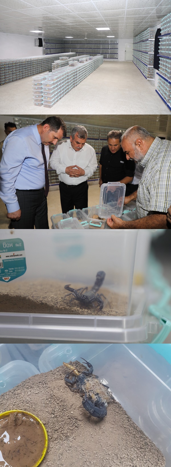 Şanlıurfa Valisi Salih Ayhan ve Şanlıurfa Büyükşehir Belediye Başkanı Zeynel Abidin Beyazgül ile beraber Türkiye’de akrep yetiştiriciliği belgesine sahip tek firması olan ve Şanlıurfa’dan Türkiye’nin ihracatına büyük katkı sağlayan ve Haliliye ilçesine bağlı Akziyaret mahallesinde kurulan Akrep Üretim tesisini ziyaret ederek incelemelerde bulundu.