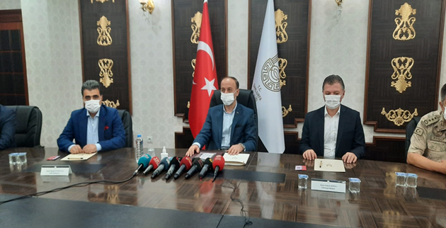 Vali Erin,” 1 Haziran’dan normalleşme süreciyle birlikte Pozitif vaka sayılarımızda artış var bunu gizlemiyoruz. Daire başkanları ve bir çok sağlık çalışanlarda pozitif çıktı. Alınması gereken önlemleri vatandaşlarımız ve sizlerle birlikte paylaştık. Yeni bir döneme girdik. Bu salgının yayılımını alacağımız basit tedbirlerle önleyebiliriz. Burada herkese büyük görevler düşüyor. Önce kendimizden, ailemizden ve çevremizden başlayarak almamız gereken tedbirler var. İnşallah aşı ve tedavisi bulunur. Ülkemizde de bu tedaviye başlanır ve bu virüs ortadan kaldırılır. Şanlıurfa'da pandemi sürecinde büyük emek veren sağlık personellerine, jandarma teşkilatına, emniyet teşkilatına ve diğer bütün arkadaşlara huzurunuzda teşekkür ediyorum" dedi.