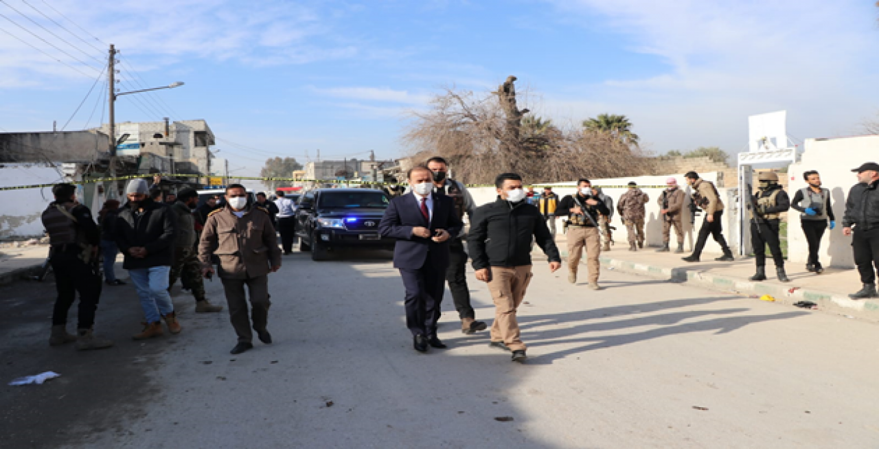 Barış Pınarı Harekâtı ile Türkiye’nin kontrolüne geçen Telabyad’ın huzur ve güven ortamını bozmak amacıyla PKK/YPG’li teröristlerin çarşı merkezinde gerçekleştirdiği patlamanın ardından ilçeye giden Şanlıurfa Valisi Abdullah Erin, olayın meydana geldiği yerde incelemelerde bulundu.