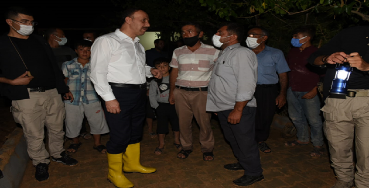 Vali Abdullah Erin, ekiplerin çalışmalarının sürdüğü bölgedeki incelemelerinin ardından mahalle sakinlerine geçmiş olsun dileklerini iletti.