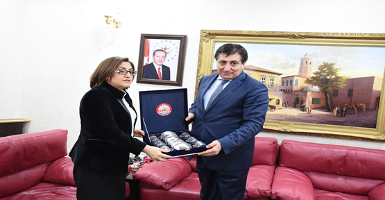 Şanlıurfa Valisi İzzettin Küçük, Gaziantep Büyükşehir Belediye Başkanı Fatma Şahin’i makamında kabul etti.