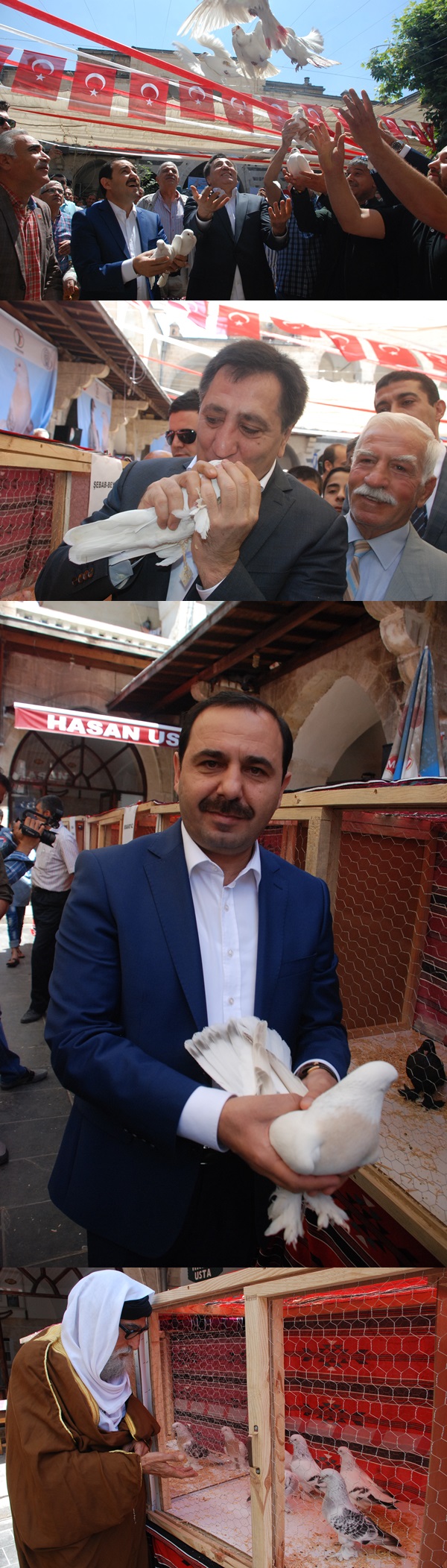 Şanlıurfa Valiliği, Karacadağ Kalkınma Ajansı ile ŞURKAV, tarafından Şanlıurfa’da Güvercin Festivali düzenlendi. ‘Medeniyetin Kanatlandığı Yer Şanlıurfa’ Ulusal En Güzel Güvercin Yarışması tarihi Gümrük Han’ında yapıldı. Yarışmaya getirilen güvercinlere vatandaşlar yoğun ilgi gösterdi. Güvercin Yarışmasının açılış törenine katılan Şanlıurfa Valisi İzzettin Küçük, Cumhuriyet Başsavcısı Uğurhan Kuş, CHP İl Başkanı Aziz Aydınlık, yarışmaya getirilen güvercinleri tek tek inceleyerek görevlilerden bilgi aldı. Kafesteki güvercinleri eline alan Vali Küçük, kuşlarla yakından ilgilendi.