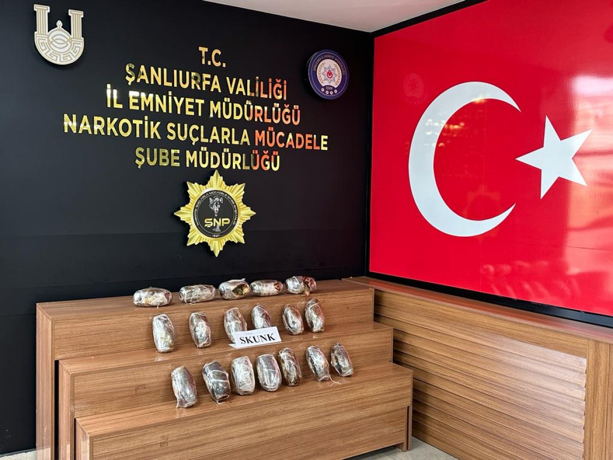 Şanlıurfa İl Emniyet Müdürlüğü ekipleri de sabah saatlerinde operasyon düzenledi. Gerçekleşen operasyonda 13 kilogram skunk maddesi ele geçirildi.