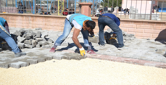Eyyübiye Belediyesi Fen İşleri Müdürlüğü ekipleri, yol yapım çalışmalarına ara vermeden devam ediyor. Merkez ve kırsal mahalle ayırımı yapmadan yol yapımını sürdüren ekipler son olarak Yardımcı kırsal mahallesinde 22 bin metre karelik alanı kapsayan kilitli beton parke taşı döşeme çalışmalarına başladı. Vatandaşlara daha yaşanılabilir alanlar oluşturmayı hedefleyen ekipler, kışın çamurdan yazın da tozdan dolayı mağduriyet yaşayan kırsal mahallelerde de kilitli beton parke taşı döşeme çalışmalarını sürdürüyor. İlçede yaşam standartlarını yükseltmek için gece gündüz çalışan ekipler, Yardımcı kırsal mahallesine kilitli beton parke taşı döşüyor. 10 kişilik ekiple çalışmaların başladığı bölgede köy içi parke taşı döşeme çalışmaları vatandaşın takdirini topluyor. Mahallelerindeki çalışmalardan duydukları memnuniyeti dile getiren Mahalle Muhtarı ve vatandaşlar, Eyyübiye Belediye Başkanı Mehmet Ekinci’ye teşekkür ettiler.