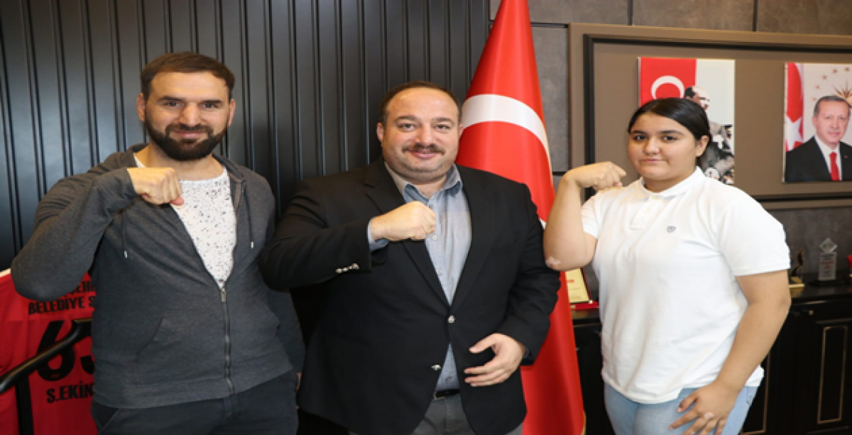 Belediye Başkan Yardımcısı Süleyman Çelik ve Antrenör Şükrü Güngör'ün de eşlik ettiği ziyarette; Başkan Ekinci, genç sporcuya 43. Dünya Bilek Güreşi Şampiyonası"nda başarılar diledi.