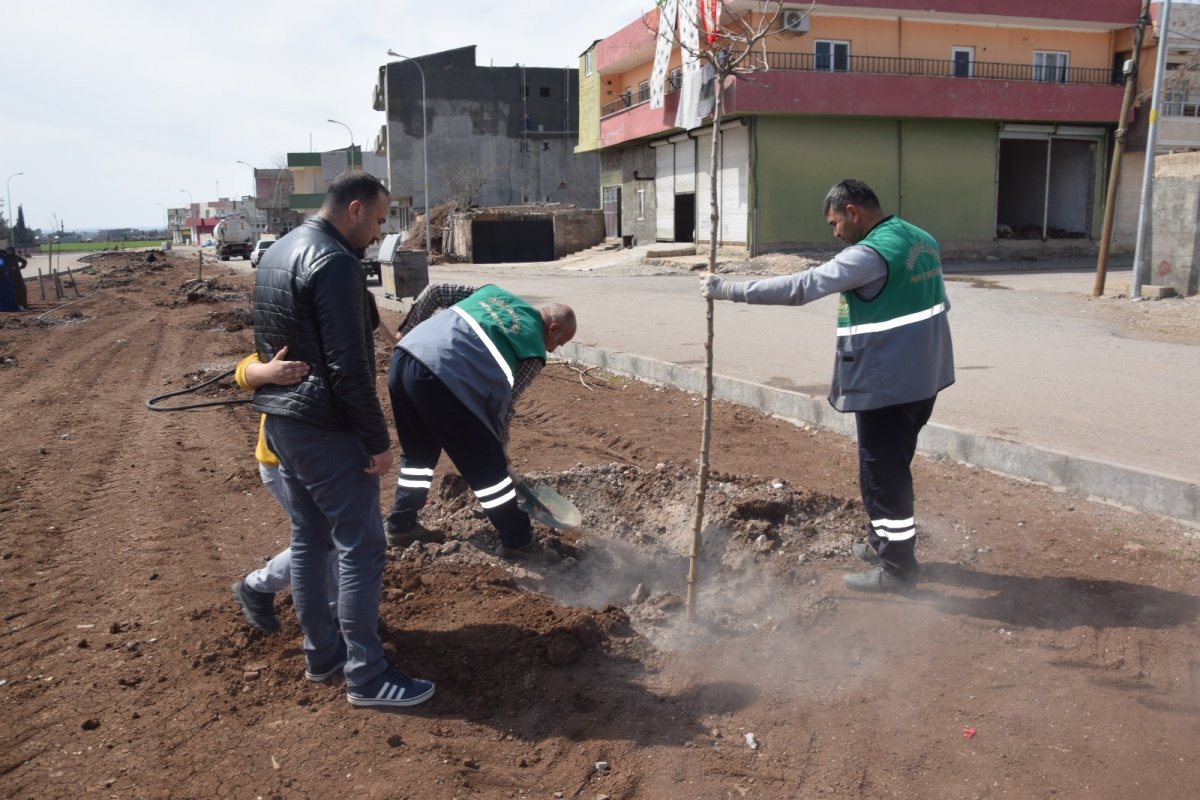 Ekipler, ilçenin giriş ve çıkış bulvarlarında gül ve mevsimlik çiçek ekiminin yanı sıra şimdi de Atatürk Mahallesinin ana arteri olan cadde refüjünde ağaç dikme çalışmalarına başladı.