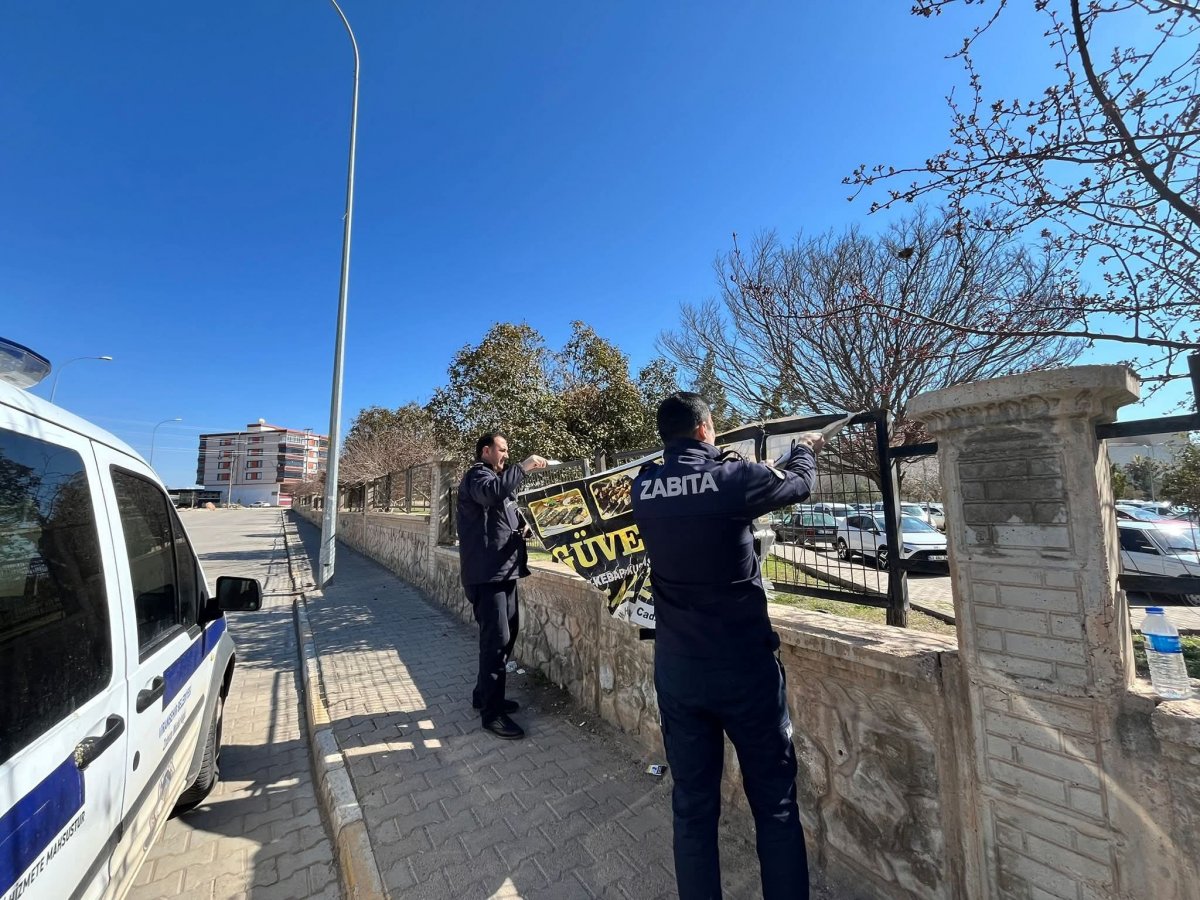 Belediye Zabıta Müdürlüğü ekipleri tarafından cadde ve sokaklarda yapılan denetimlerde, duvarlara, tel örgülere, direklere ve özellikle okul çevrelerine gelişigüzel şekilde asıldığı tespit edilen afiş ve ilanlar kaldırıldı.