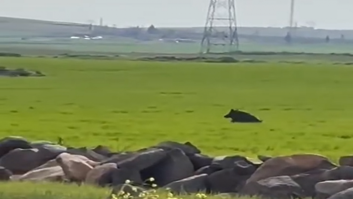 Kısa süreli şaşkınlık yaşayan çiftçi, sakinliğini koruyarak cep telefonuna sarıldı ve o anları görüntüledi. Doğal yaşamın nadir anlarından biri olarak kaydedilen görüntülerde, yaban domuzunun bir süre bölgede dolaştıktan sonra gözden kaybolduğu görüldü.