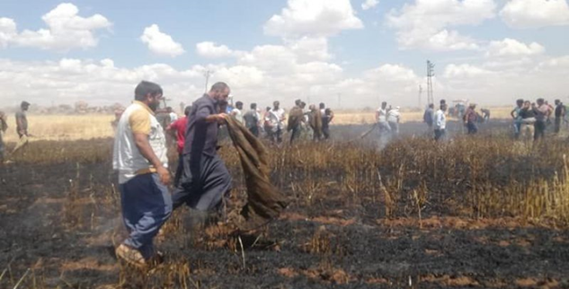 Şanlıurfa’nın Viranşehir ilçesinde bir buğday tarlasında çıkan yangın köylüleri seferber etti.