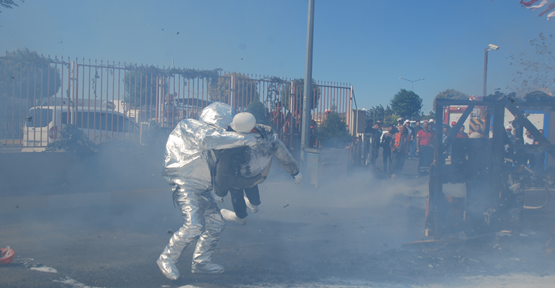 Şanlıurfa Büyükşehir Belediyesi İtfaiye daire başkanlığı tarafından, yangına müdahale, tahliye ve kurtarma tatbikatı yapıldı. Tatbikattaki görüntüler, gerçeğini aratmadı. İtfaiye Haftası etkinlikleri kapsamında İtfaiye müdürlüğünde düzenlenen yangın ve kurtarma tatbikatı, izleyenlere heyecan dolu dakikalar yaşattı. Senaryo gereği binanın 2'inci katında çıkan yangına dakikalar içinde müdahale eden itfaiyeciler, mahsur kalanları da başarılı bir operasyonla kurtardı. Trafik kazası ihbar alan ekipler, siren çalarak hızla olay yerine intikal etti. Ekipler, otomobil içerisinde sıkışan yaralıyı titizlik içerisinde kaza kırım araçlarının yardımıyla çıkardı. İtfaiye ekipleri bir kulübede çıkan yangına kısa bir sürede müdahale ederek soğurma çalışması yapan ekipler, kulübe içerinde buluna bir kişi itfaiye ekiplerin yeni kullandığı yangına karşı yanmayan elbise kullanılarak çıkartıldı. Heyecanlı anlar yaşatan tatbikat, izleyenlerden tam not aldı.