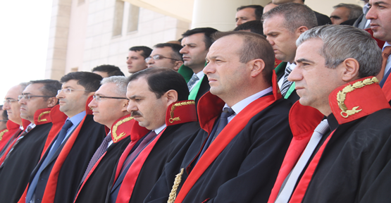 Adliye bahçesinde toplanan savcı ve hâkimler, saygı duruşunda bulunarak, İstiklal Marşı’nı okudu.