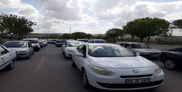 Yeni tip korona virüs tedbirleri kapsamında 30 büyükşehir ve Zonguldak'ta bu gece saat 24:00 itibariyle ikince kez başlayacak sokağa çıkma yasağı öncesi Şanlıurfa'da yasağın uygulanmasının öncesinde çevre yollarında uzun araç kuyrukları oluştu.