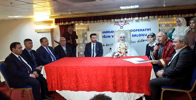Harran Üniversitesi Kongre ve Düğün Salonunda yapılan düğün töreninde genç çiftin nikahını Karaköprü Belediye Başkanı Vekili kıyarken nikah Şahitliklerini, TBMM İdare Amiri ve Şanlıurfa Milletvekili Halil Özcan Şanlıurfa Valisi Abdullah Erin eşi Gülhan Erin 20. Zırhlı Tuğay Komutan Yardımcısı Albay Ercan Eroğlu Aile, Çalışma ve Sosyal Hizmetler Şanlıurfa İl Müdürü Hasan Bilici Ak Parti Eyyibiye İlçe Başkan Yardımcısı Ali Yavuz  yaptılar.