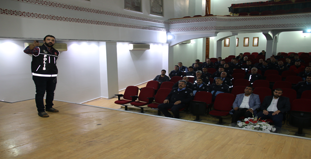 Şanlıurfa Büyükşehir Belediyesi Zabıta Daire Başkanlığı ekiplerine uyuşturucu ile mücadele kapsamında Narko rehber eğitmenleri tarafından eğitim semineri verildi.